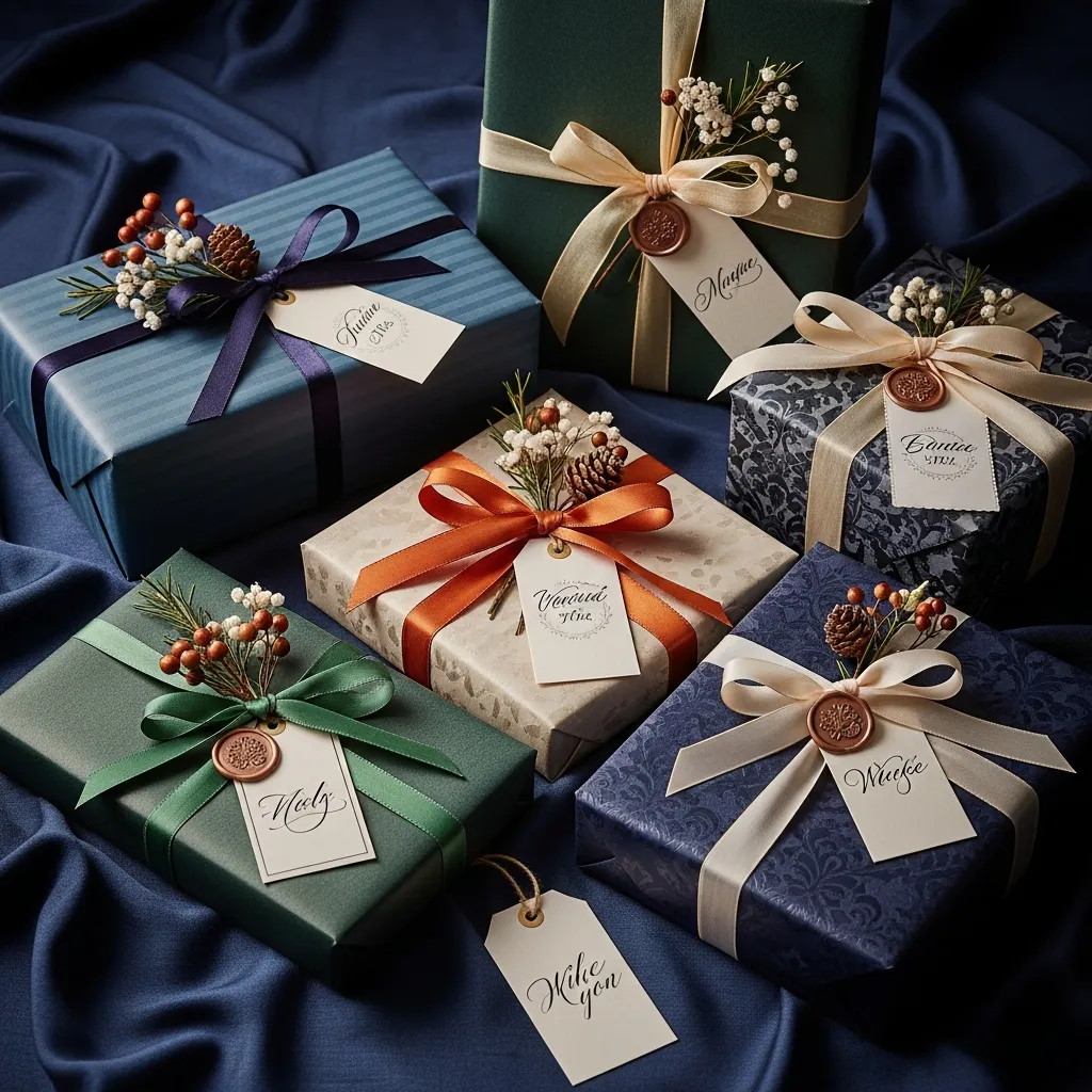 Elevated presentation with premium papers, hand-tied bows, decorative embellishments, and personalized gift tags. Each detail is carefully considered to create a memorable unwrapping experience.